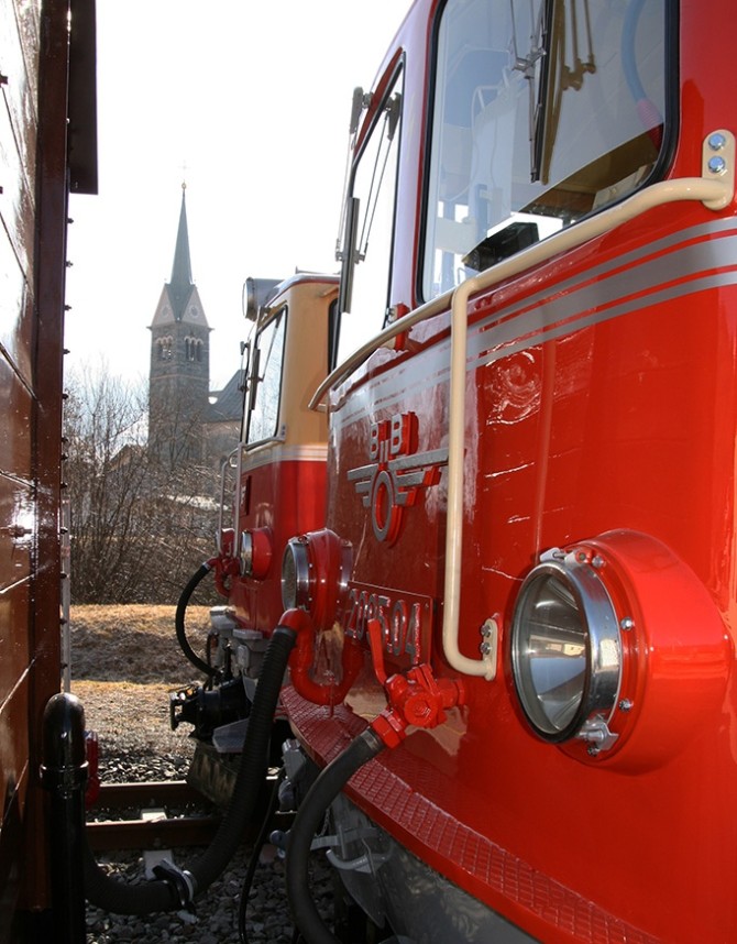 Die 2095.04 und die Schweseterlokomotive Vs 71 (ex. 2095.01) mit dem Jubiläumswagen. (copyright Thomas Oberkalmsteiner/PLB)